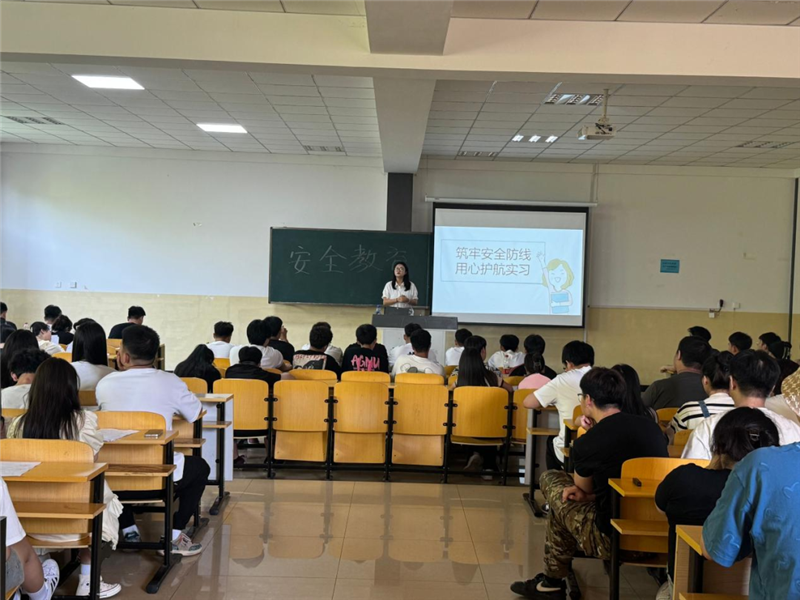 辅导员就岗位安全、人身和财产安全、防盗、防骗、防传销等多方面开展安全教育。并对实习管理材料进行讲解,指导学生填写实习材料等。