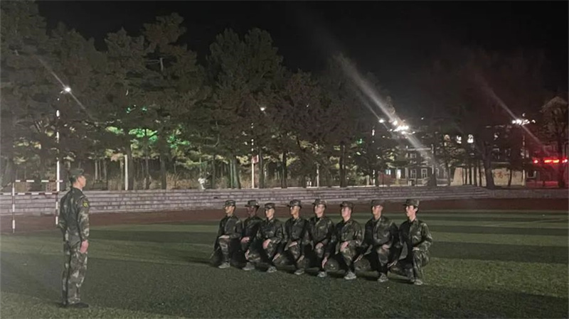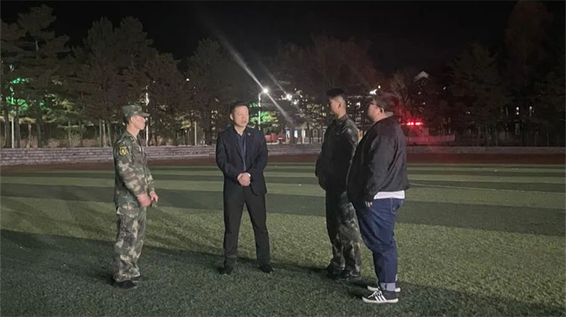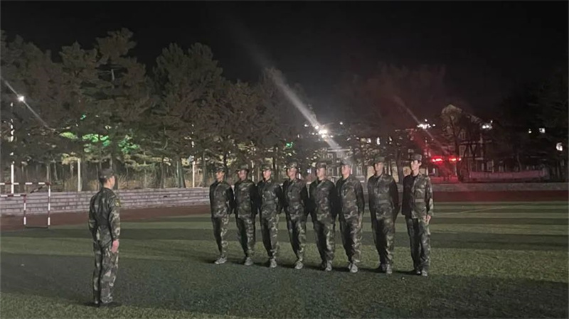 为进一步提升训练质量,激发人员参训热情,3月29日晚,我校学生工作处处长李贵河和团委书记陈宏亮来到训练场,对参训人员进行了指导。