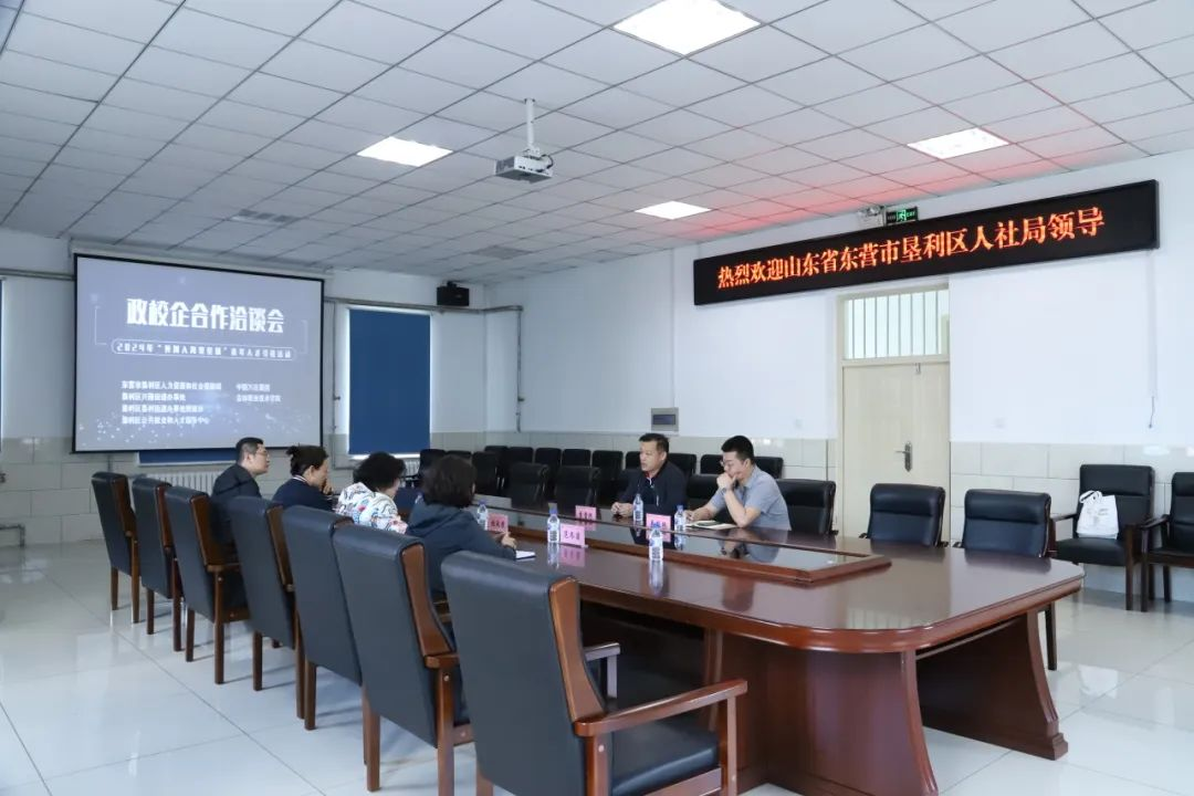 李贵河对垦利区人力资源和社会保障局的相关领导表示热烈欢迎,并向参会人员详细介绍我校的专业设置、课程设置、校园文化等相关优势、特色。