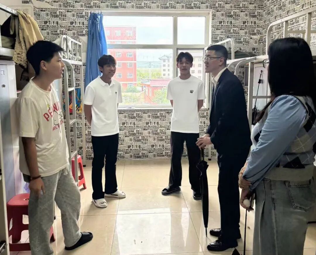 走访过程中,杨冬吉一行对新生们表示热烈欢迎,细致询问了大家对于学校环境、生活条件和餐饮等方面的适应情况。同学们畅所欲言,宿舍里洋溢着轻松而温馨的氛围。学院领导和辅导员针对学生所提出的疑问进行一一解答,给予了同学们生活以及学习上的关怀,同时对同学们寄予厚望:期望同学们新学期树立明确目标,培养良好生活习惯,享受丰富多彩的大学生活,新生们也纷纷表示,将迅速调整状态,以积极的精神面貌迎接新学期的挑战。