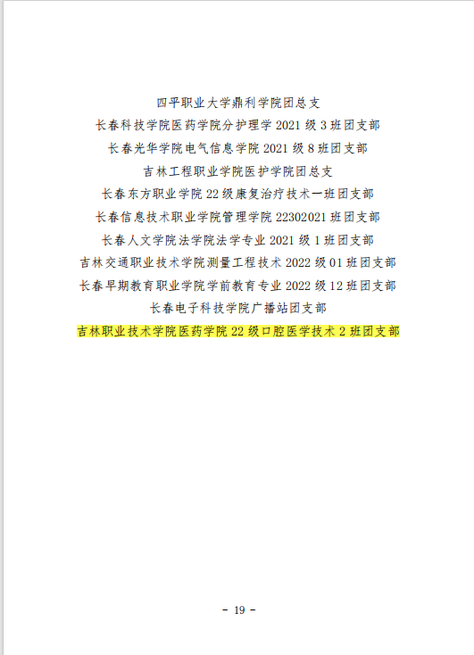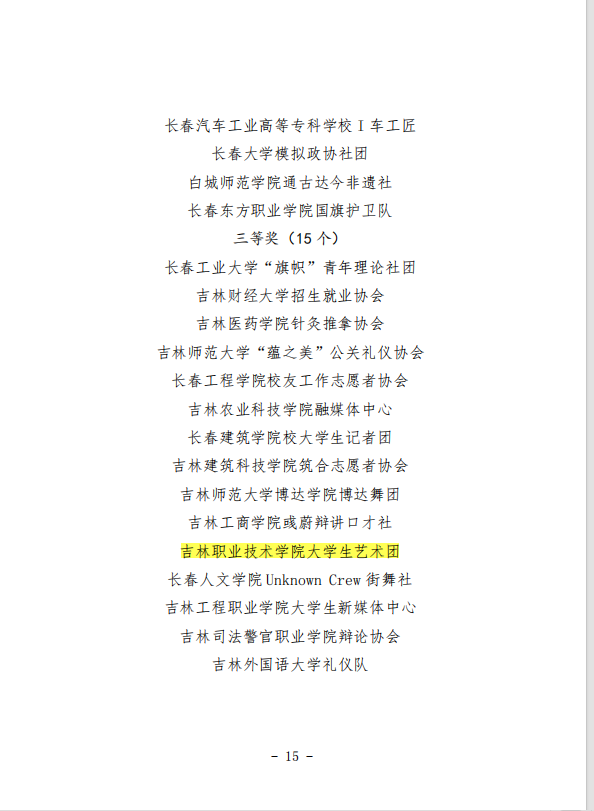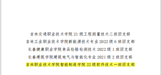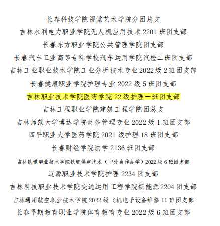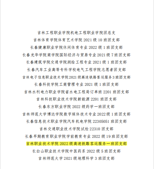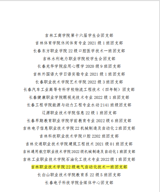 为深入贯彻落实“全团大抓基层”“全团抓学校”部署,深化高校共青团改革,强化“一切工作到支部”理念,共青团吉林省委发布《关于对2023年吉林省高校共青团“活力社团”的通报表扬》(吉团通字〔2023〕9号)和《关于对2023年吉林省高校共青团“活力团支部”的通报表扬》(吉团通字〔2023〕10号),经校内发动、学校遴选、省级评审等环节,我校大学生艺术团和22级电气自动化技术一班等6个团支部荣获共青团吉林省委通报表扬。