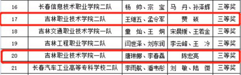近日,由吉林省教育厅主办,辽源职业技术学院承办,信创协同办公提供技术支持的吉林省职业院校技能大赛拉开帷幕。来自省内高职院校的26支队伍同台竞技。王继五、孟令军、唐琳娜、李春磊四位同学组成的两支战队代表我校参赛,两队均获得了省赛三等奖的好成绩。