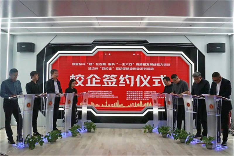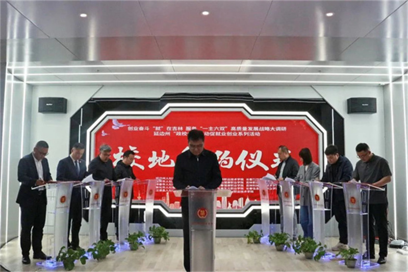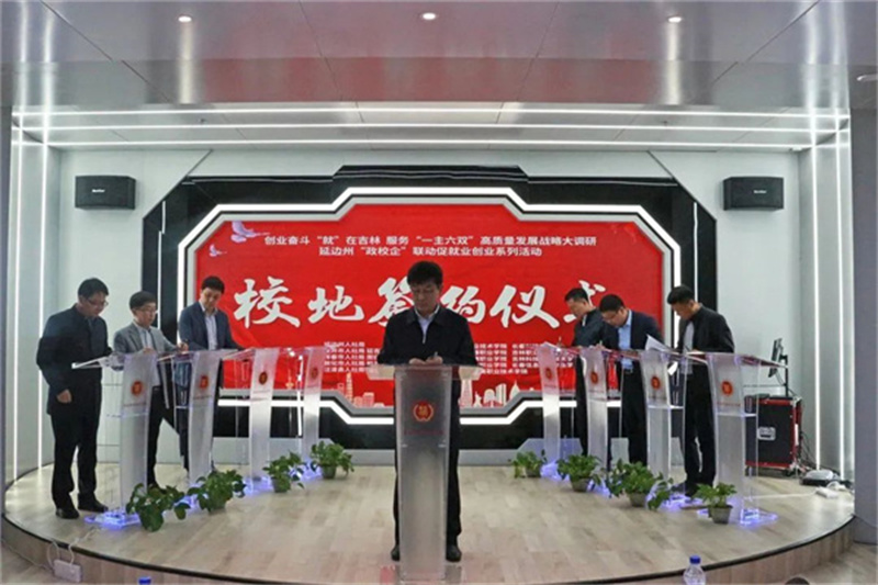 5月22日上午,延边州“政校企”联动促就业创业系列活动开幕式暨“政校企”签约仪式在龙井市人力资源和社会保障局一楼多功能路演厅顺利召开。龙井市委常委、副市长徐之光,延边州人社局副局长李铁锡及各县市人社局局长,国产高清在线精品一区二区三区校长柳森,兄弟院校领导出席会议并致辞。国产高清在线精品一区二区三区党委副书记李可心、纪委书记李贵河、就业处处长杨冬吉及相关职能部门负责人参会。会议由省教育厅驻国产高清在线精品一区二区三区督导专员、党委书记崔振宇主持。