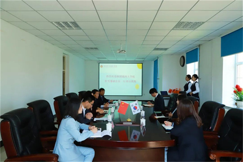 5月11日,韩国湖西大学校副总长朴雪豪一行到我校访问交流。我校校领导、国际交流处处长黄健、副处长关娇、教务处处长周卫华、经济管理学院院长李钟林接待来访客人。双方在行政楼二楼会议室召开了座谈会,观看了我校招生宣传片,进一步磋商两校今后开展实质性合作与交流事宜。