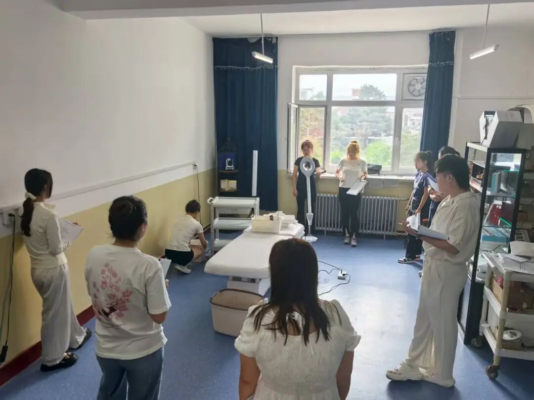 训练计划精准到小时,选手每日从 8 时训练至 24 时,仅保留 6 小时休息时间,通过反复练习打磨操作细节,形成肌肉记忆,力求实现技术零失误。同时,2025 级医美专业新生利用军训间隙参与训练,学习专业技能;2024 级全体医美学生则全暑假 24 小时配合,通过担任模特、研读技术文件等方式,为成为第二梯队选手积累经验,形成 “老带新、共奋进” 的备战氛围。
