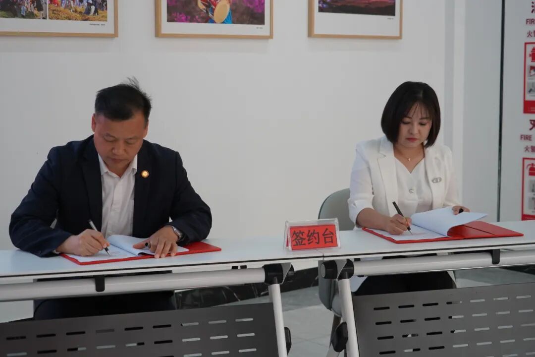 会议现场气氛庄重而热烈,在全体参会人员的见证下,李贵河与任善花共同签订“校馆党建聚合力・红色基因共传承”校地党组织合作协议书。随后,两人一同为“国产高清在线精品一区二区三区红色教育研学基地”揭牌,鲜红的牌匾不仅标志着校馆双方合作的正式开启,更承载着共同传承红色血脉、培育时代新人的责任与使命。