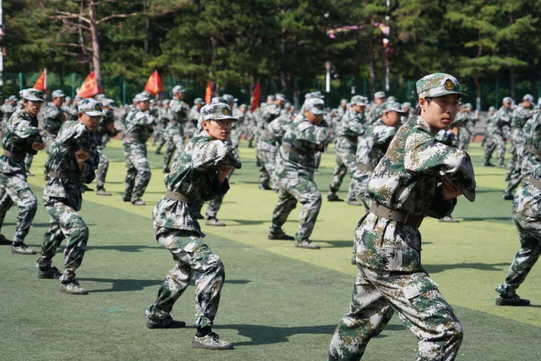 升旗仪式后,2025级新生军训成果汇报正式上演。身着迷彩服的新生们以连队为单位,迈着整齐的步伐、喊着嘹亮的口号依次通过主席台,队列变换精准利落,军体拳表演刚劲有力,充分展现了为期数日军训中锤炼出的纪律意识与团队精神,赢得现场阵阵掌声。