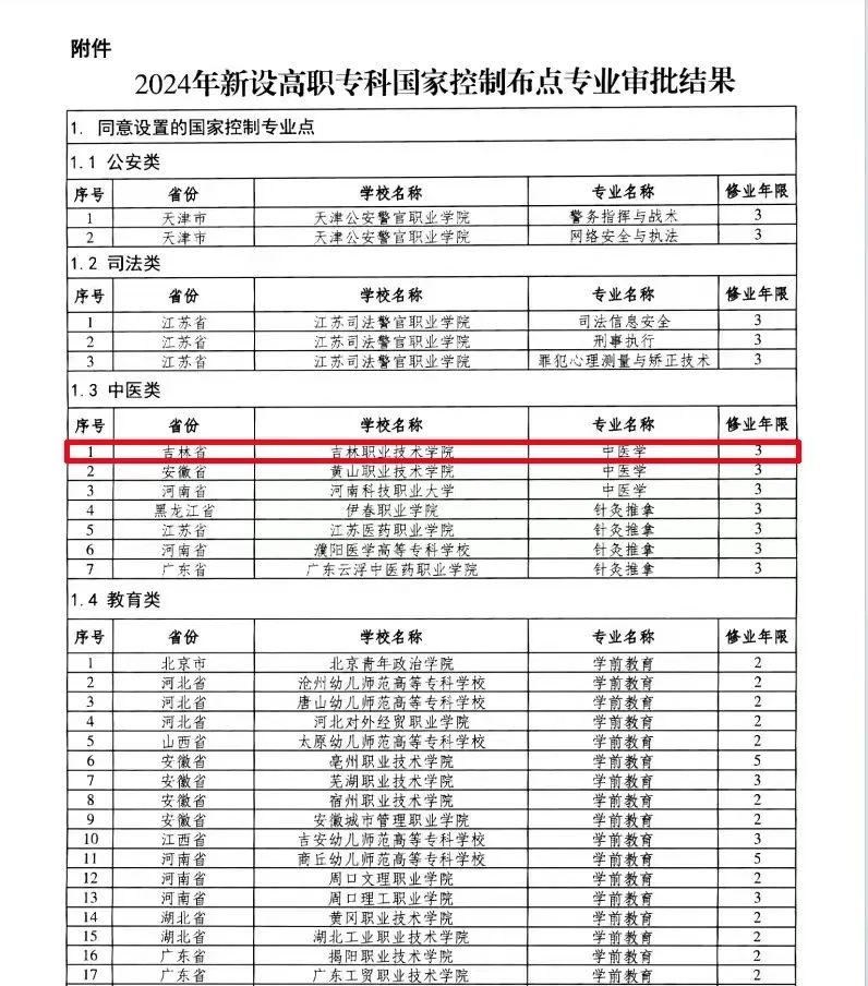 在《教育部关于公布2024年高等职业教育专科专业设置备案和审批结果的通知》(教职成函〔2024〕1号)中获悉,我校申报的中医学专业成功获批。我校医药学院自成立以来,根据社会需求,不断加强学科和专业建设,致力于为社会培养职业技能医药人才。中医学专业获教育部批准,这是我校专业建设的一项重要成果之一。