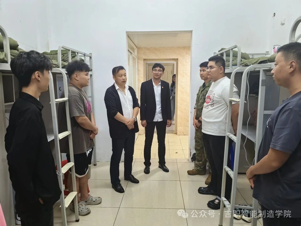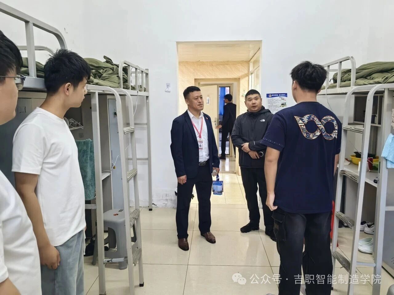 (通讯员 赵航)秋风送爽,丹桂飘香。为帮助 2025 级新生更快适应大学生活,了解新生入住后的实际需求,传递学院的关怀与温暖,近日,智能制造学院党支部书记齐迹、院长肖建伟带领辅导员深入新生寝室,与新生面对面交流,开展了一场充满温情的走访慰问活动。
