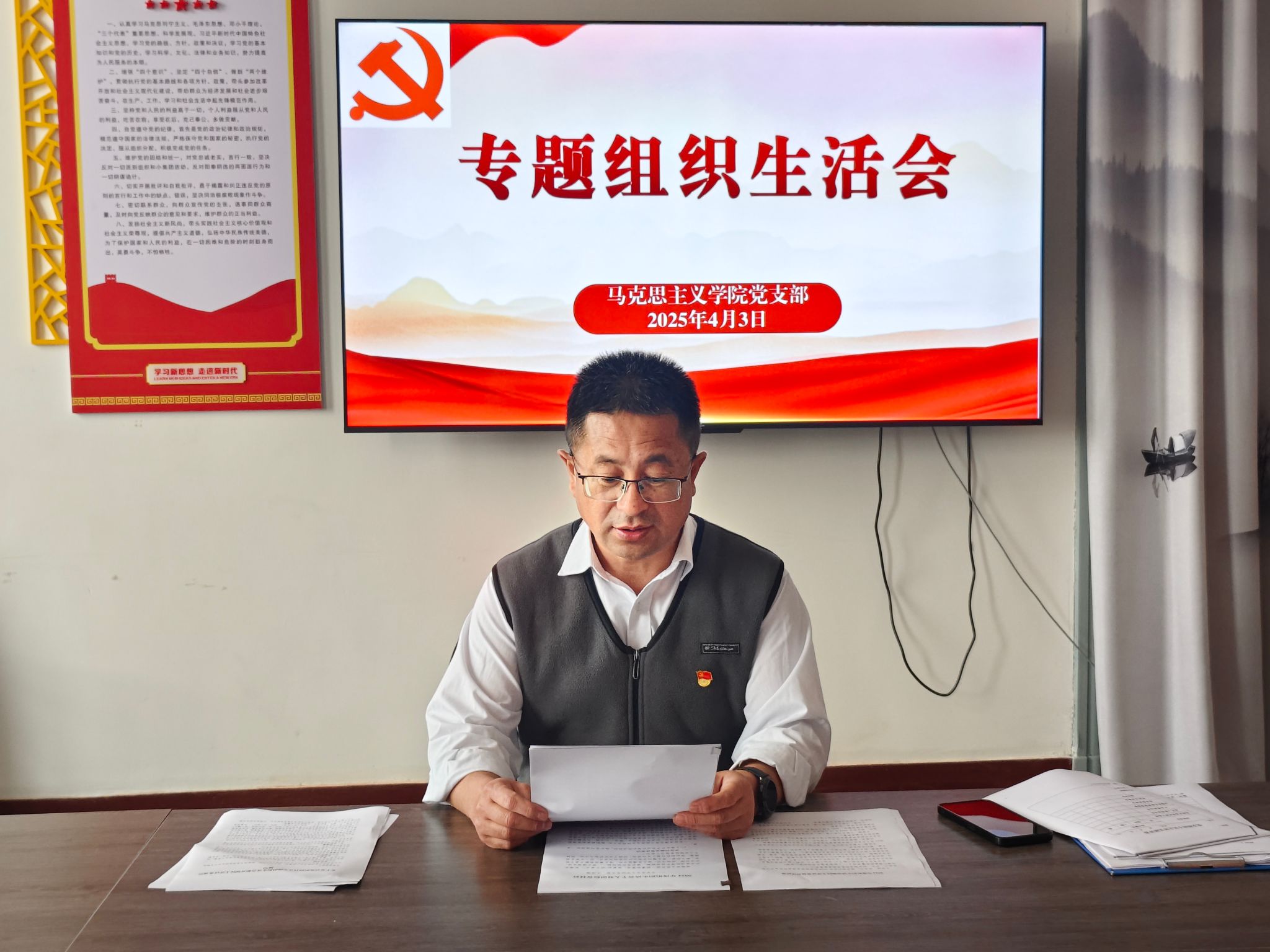 为深入学习贯彻习近平新时代中国特色社会主义思想,巩固深化党纪学习教育成果。2025年4月3日,按照学校党委统一部署,马克思主义学院党支部召开了2024年度组织生活会和民主评议党员会议。会议由校党委委员、党支部书记王泽强主持,国产高清在线精品一区二区三区党委委员、副书记李可心同志以普通党员身份参加会议。